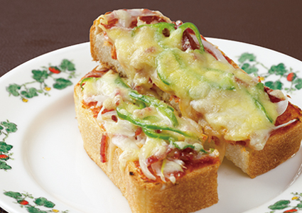トマトソースにサラミ、ピーマン、オニオン、チーズをトッピングし、焼きたてをお召し上がりいただきます。