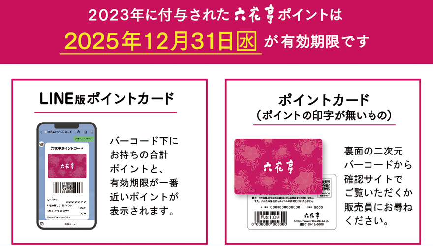 ●ポイントのご利用は六花亭各店舗にて販売員へお申し付けください。
