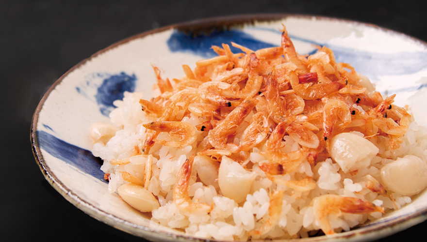 ほんのり甘い大福豆(おゝぶくまめ)と 風味よく炊いた桜えびをあわせました。