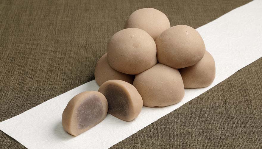 そば粉入りのお餅で皮むき小豆餡を包みました。