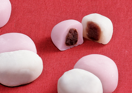 つぶ餡入りの紅いお餅と、こし餡入りの白いお餅。紅白の新粉餅です。