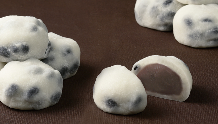 ほどよく塩を効かせた粒よりの北海道産黒豆を加えたお餅でこし餡を包みました。