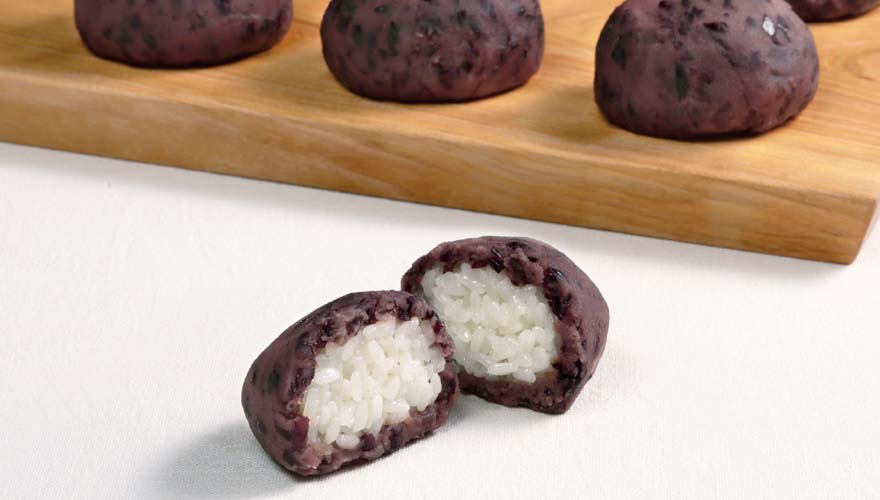 ふっくらと蒸しあげたもち米によもぎを混ぜました。柔らかくみずみずしい餡をかけてお召し上がりください。